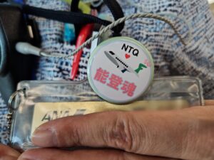 (9/30)「能登魂」能登空港のスタッフさんの胸にピンバッジ。New!!
