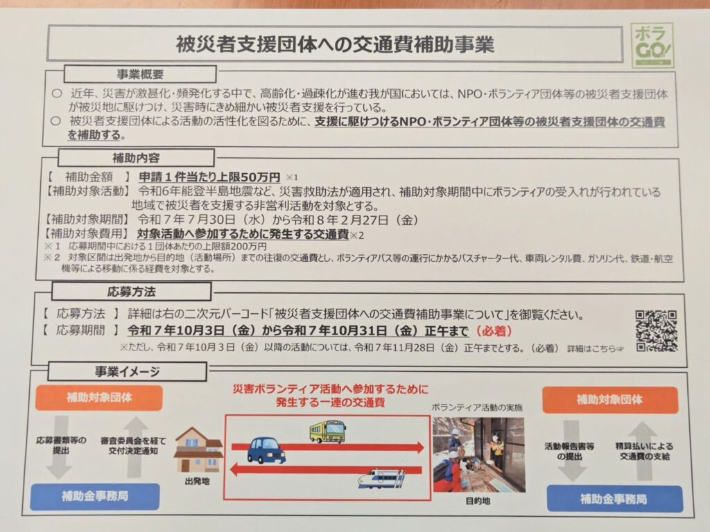 (10/15)ボランティアの交通費補助事業の第3回(今年からスタート。通算4回目)の募集が始まっています。