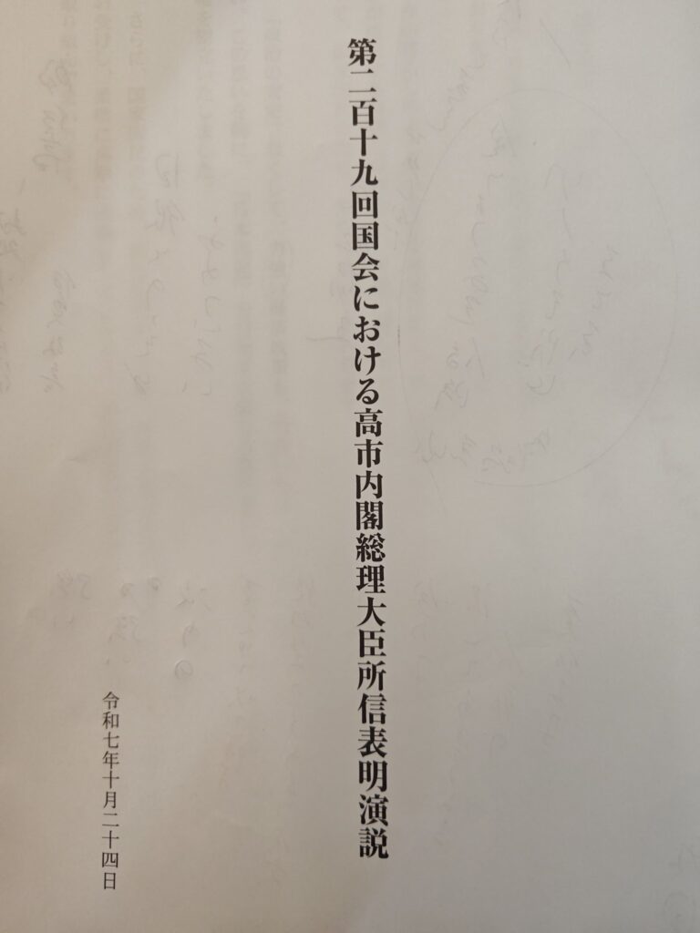 (10/24)臨時国会が始まり、今日は高市総理の所信表明演説。