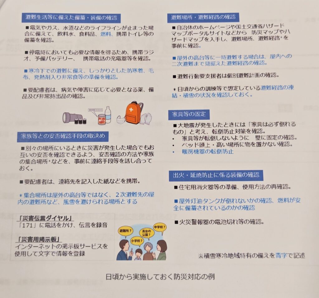 まずは個々で出来得る備えをしているか、確認をしていただければと思います。