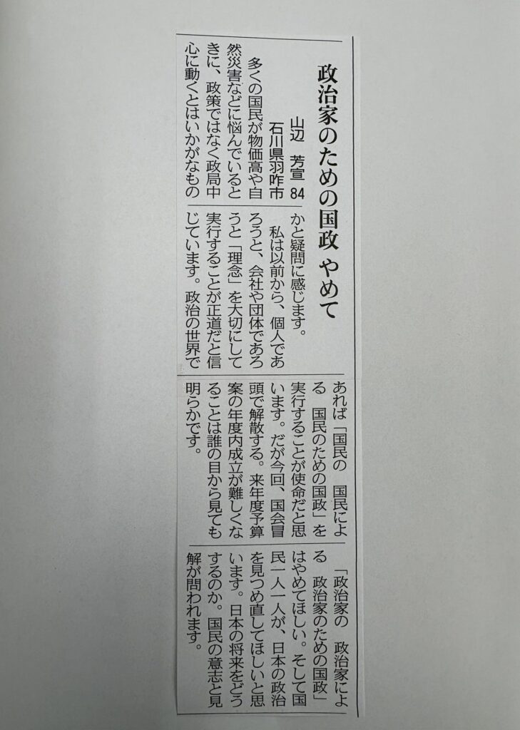 2026/1/23 金曜日 / 最終更新日 : 2026/1/23 金曜日 事務所 活動報告 (1/22)前羽咋市長の投稿。自公→民国社→自公、2度の政権交代時も時々の政権との付き合いを円滑にされていました。バランス感覚の優れたリーダーであり、政党の為ではなく、常に市民の為。ブレない姿は本当に貴重で、今も山辺前市長の蒔かれた種は各所で花を咲かせています。 FacebookXBlueskyCopy